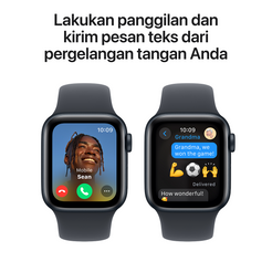 • TETAP TERHUBUNG — Kirim teks, terima telepon, dengarkan musik dan podcast, atau panggil bantuan dengan Darurat SOS.3 Apple Watch SE (GPS) berfungsi dengan Wi-Fi atau iPhone Anda agar Anda tetap terhubung.