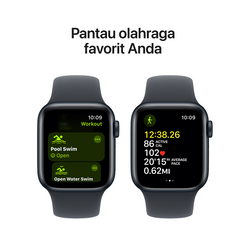 7 Apple Watch SE memiliki level tahan air 50 meter menurut standar ISO 22810:2010. Artinya, bisa digunakan untuk aktivitas air dangkal, seperti berenang di kolam renang atau di laut. Apple Watch SE tidak boleh digunakan untuk scuba diving, ski air, atau aktivitas lainnya yang melibatkan air berkecepatan tinggi atau perendaman melebihi kedalaman dangkal. Ketahanan air bukanlah kondisi permanen dan dapat berkurang seiring waktu. Untuk informasi tambahan, lihat support.apple.com/HT205000.