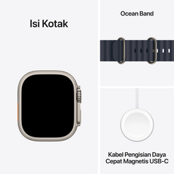 • MENGAPA APPLE WATCH ULTRA 2 — Inilah jam olahraga dan bertualang paling andal. Fitur canggih untuk pelari, pesepeda, perenang, pendaki, penyelam, dan banyak lagi. Casing titanium yang tangguh, kini tersedia dalam warna hitam satin. Layar Retina yang Selalu Aktif dan super cerah. GPS frekuensi ganda presisi yang sangat akurat.1 Fitur kesehatan, keselamatan, dan konektivitas yang andal.2 Dan kekuatan baterai hingga 36 jam untuk penggunaan normal dan 72 jam dalam Mode Daya Rendah.3