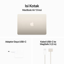 • LAPTOP M3 TIPIS. BERTENAGA FANTASTIS — MacBook Air secepat kilat dengan chip M3 adalah laptop super portabel yang menyelesaikan pekerjaan dan permainan dengan mulus.